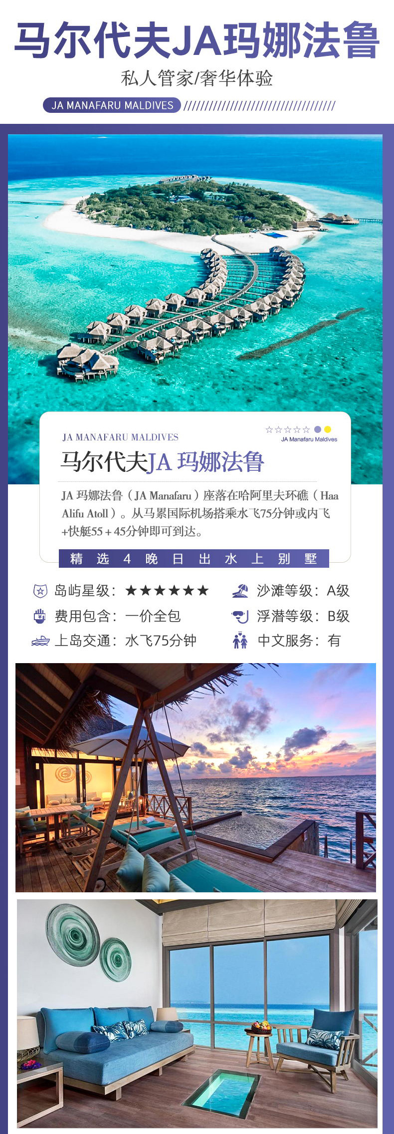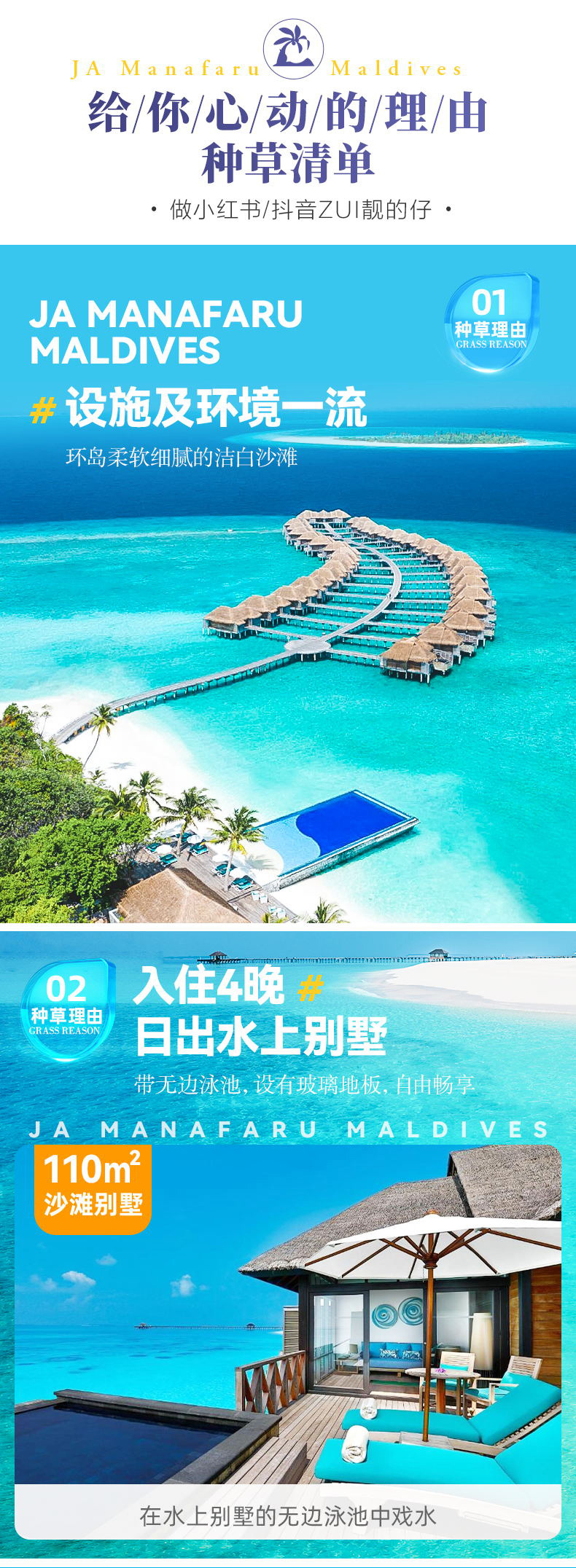 【北京直飞马尔代夫】JA玛娜法鲁岛JA MANAFARU6-7日游【一价全包+内飞上岛+中文管家服务】 暑期早鸟优惠:出发前30天报名满10000减500(7月1日-8月30日出发)