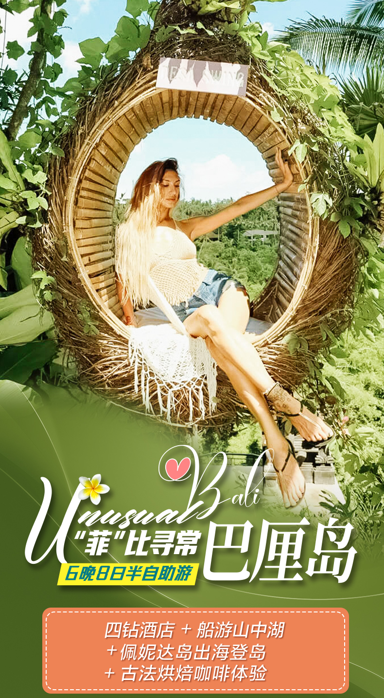 【菲比寻常】巴厘岛6晚6-8日半自助游【2人起订/随订随走/特色船游山中湖/体验咖啡制作过程/佩妮达岛出海/网红云梯+鸟巢/】