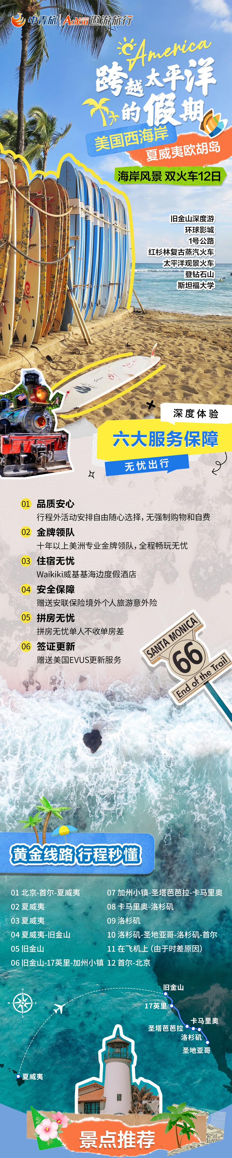 夏威夷与美国西海岸之旅的结合,打破了常规旅游线路的局限,为游客带来一次全方位、多层次的旅行体验,无论是追求自然之美、文化探索,还是渴望多样的休闲节奏,都能在这趟旅程中得到满足。
