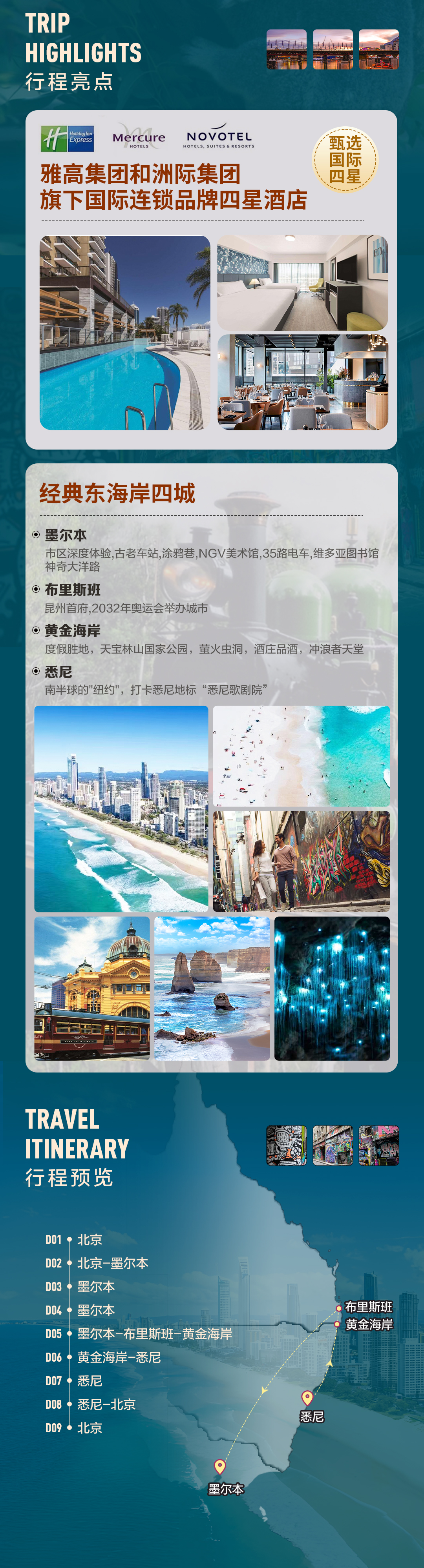 【经典东海岸】文艺之城墨尔本,繁华都市悉尼,热带风情布里斯班,度假胜地黄金海岸,探索澳洲独特魅力