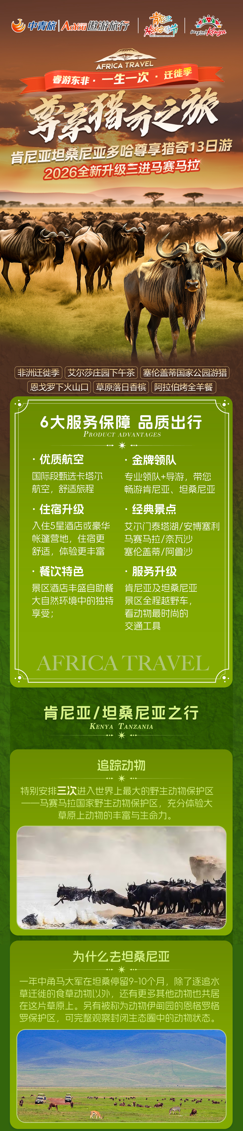 【睿游东非·一生一次·迁徙季】肯尼亚坦桑尼亚多哈尊享猎奇深度13日游 三进马赛马拉+二进塞伦盖蒂+下火山口+艾尔莎庄园下午茶+草原落日香槟+多哈一日游