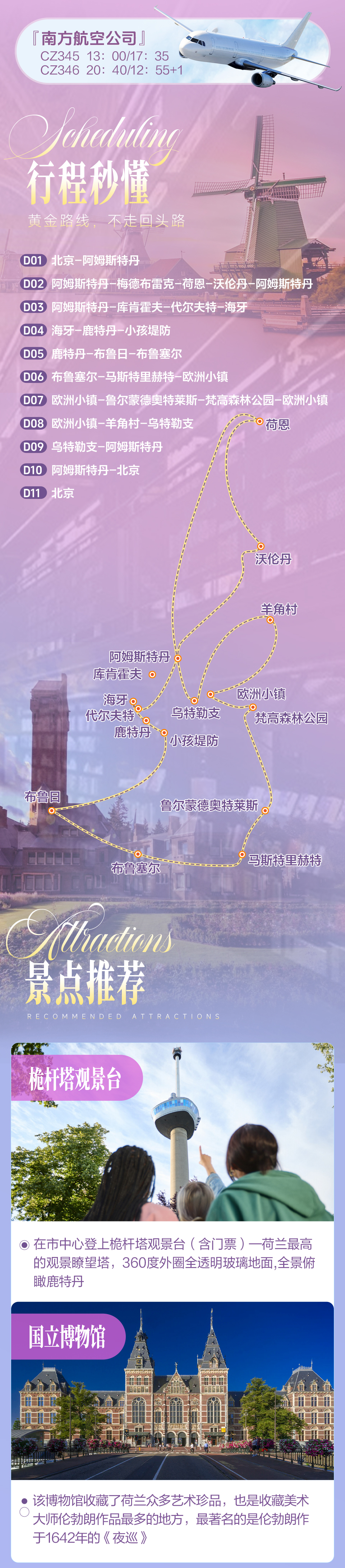 【双冠】【悦游欧洲】【多彩花季+国王节】荷兰+比利时一价全含11日游【库肯霍夫郁金香公园+羊角村+梵高森林公园+音乐盒博物馆+桅杆观景台】 南航直飞,中文导游服务,赠送WIFI服务+旅行三宝