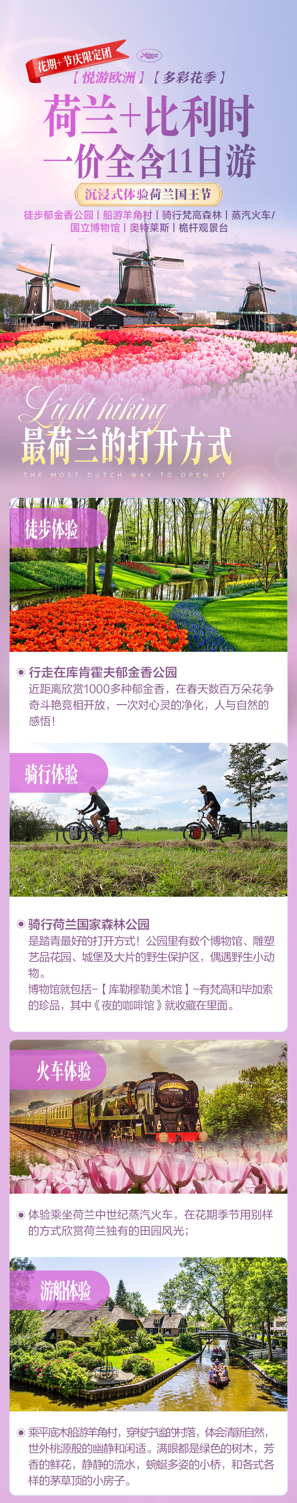 多彩荷兰赏花新体验:步行+游船+火车+骑行 徒步探访郁金香之国,徜徉在世界最大的郁金香花园-库肯霍夫;