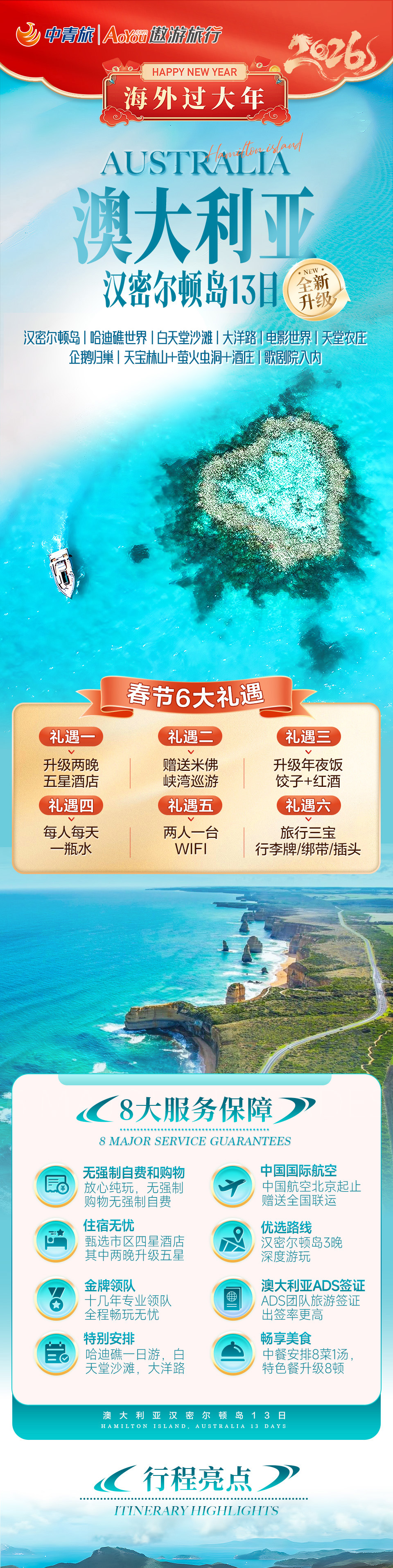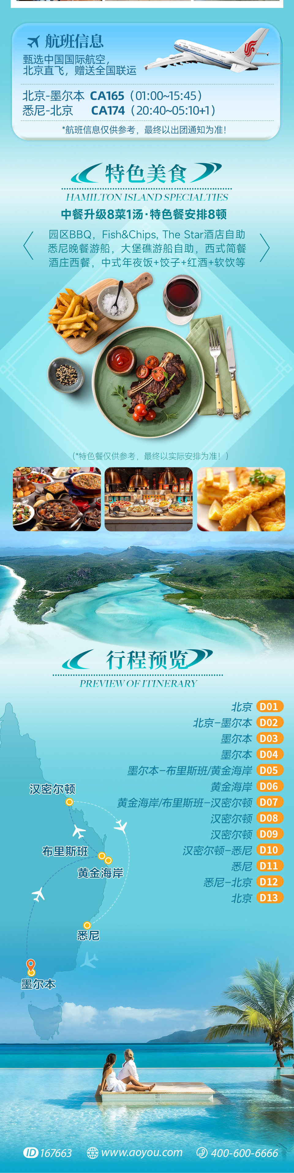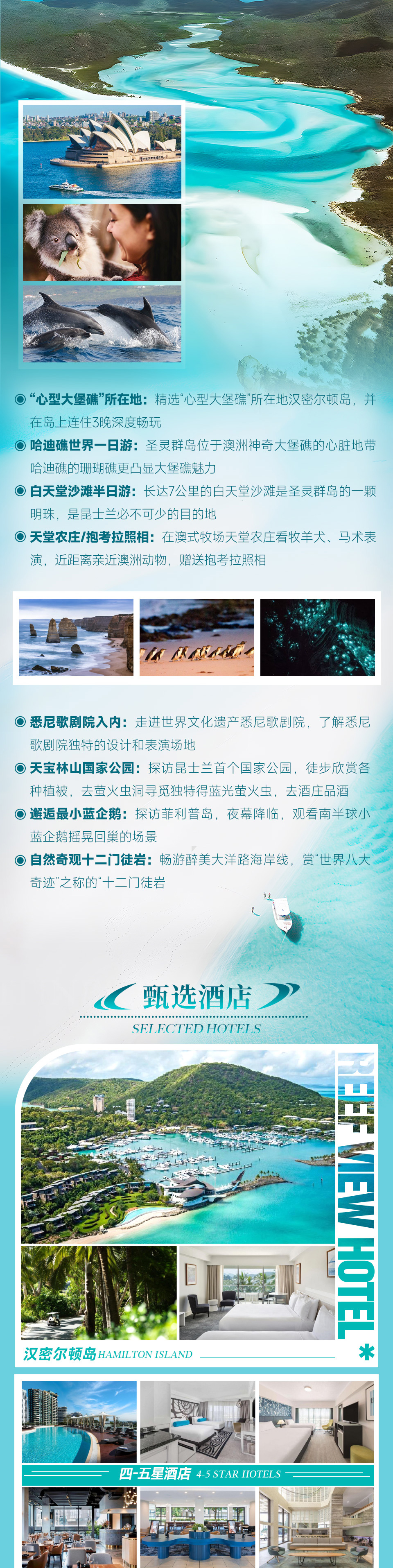 【心动大堡礁】澳大利亚汉密尔顿岛13日游【澳大利亚东海岸悉尼/墨尔本/黄金海岸/汉密尔顿岛】 一价全含,国航直飞,四-五星酒店,中餐8菜1汤,中文领队