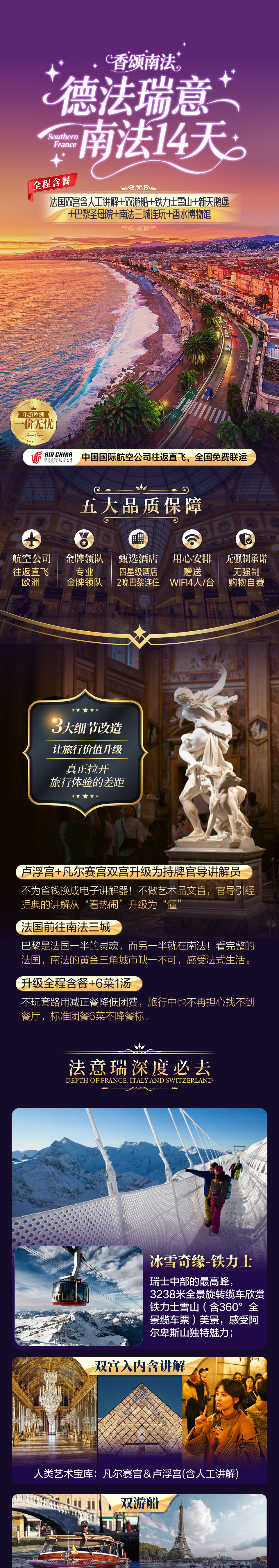 【乐游欧洲】德法瑞意+南法14日游【全程含餐/3200米铁力士雪山/双宫入内/双游船/新天鹅堡/南法三城/巴黎圣母院/香水博物馆】 五渔村/三顿特色餐/罗马city walk/摩纳哥大公国