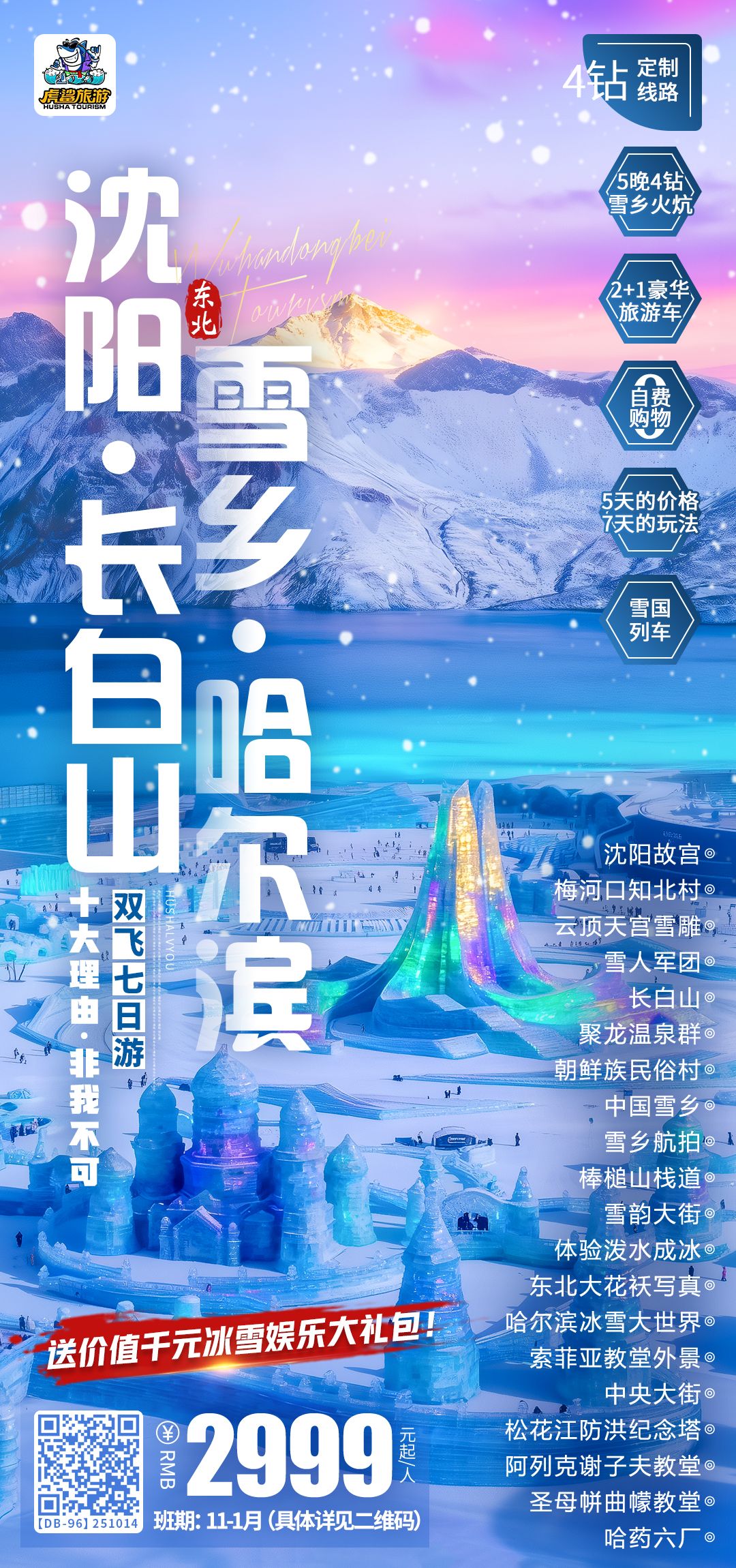 雪乡,可调整其它城市二浪河/永安/牡丹江入住;
