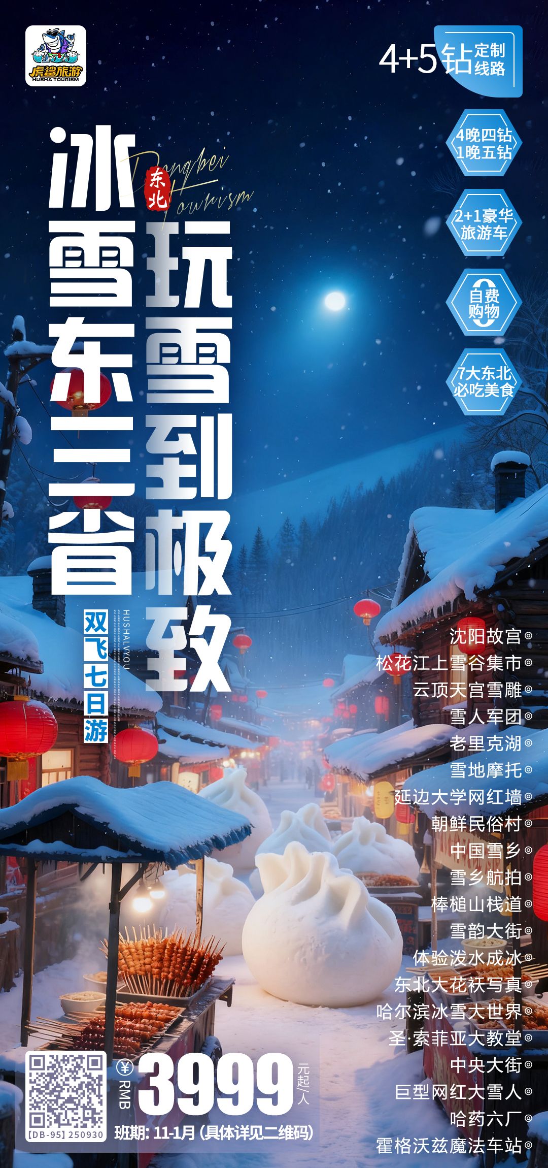 雪乡,可调整其它城市二浪河/永安/牡丹江入住;