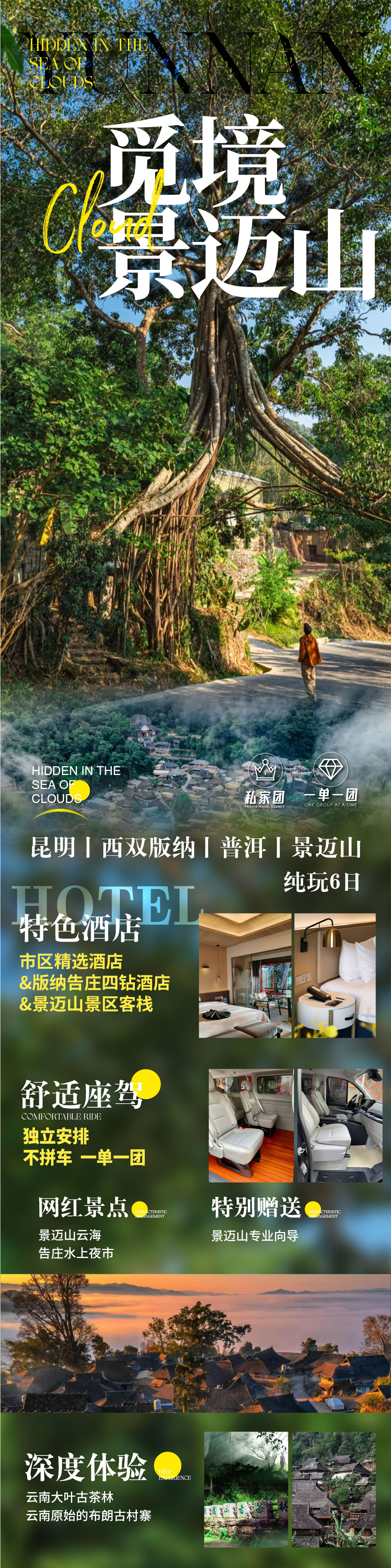 【云南】昆明+普洱+西双版纳双飞6日【普洱国际森林公园+景迈山+糯干古寨+翁基古寨+百年峰神榕树+野象谷+原始森林公园】 【觅境景迈山】一家一团|凯里亚德或温德姆酒店+景迈特色客栈|小众秘境