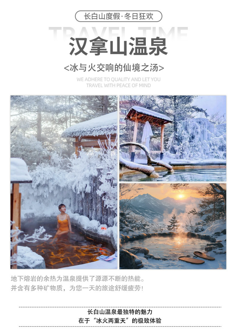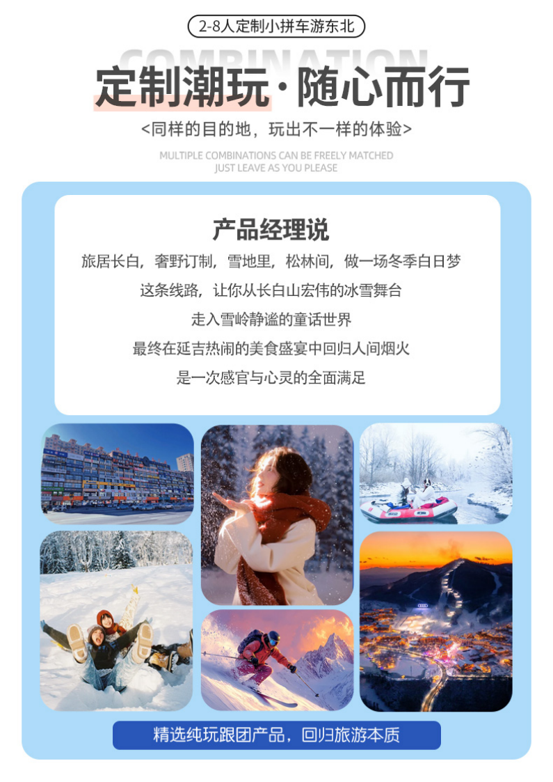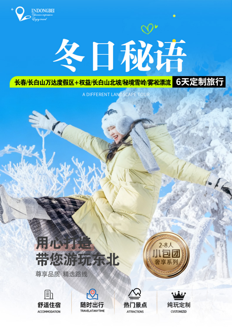 旅居长白,奢野订制,雪地里,松林间,做一场冬季白日梦;这条线路,让你从长白山宏伟的冰雪舞台,走入雪岭静谧的童话后台,在延吉热闹的美食盛宴中回归人间烟火,是一次感官与心灵的全面满足;