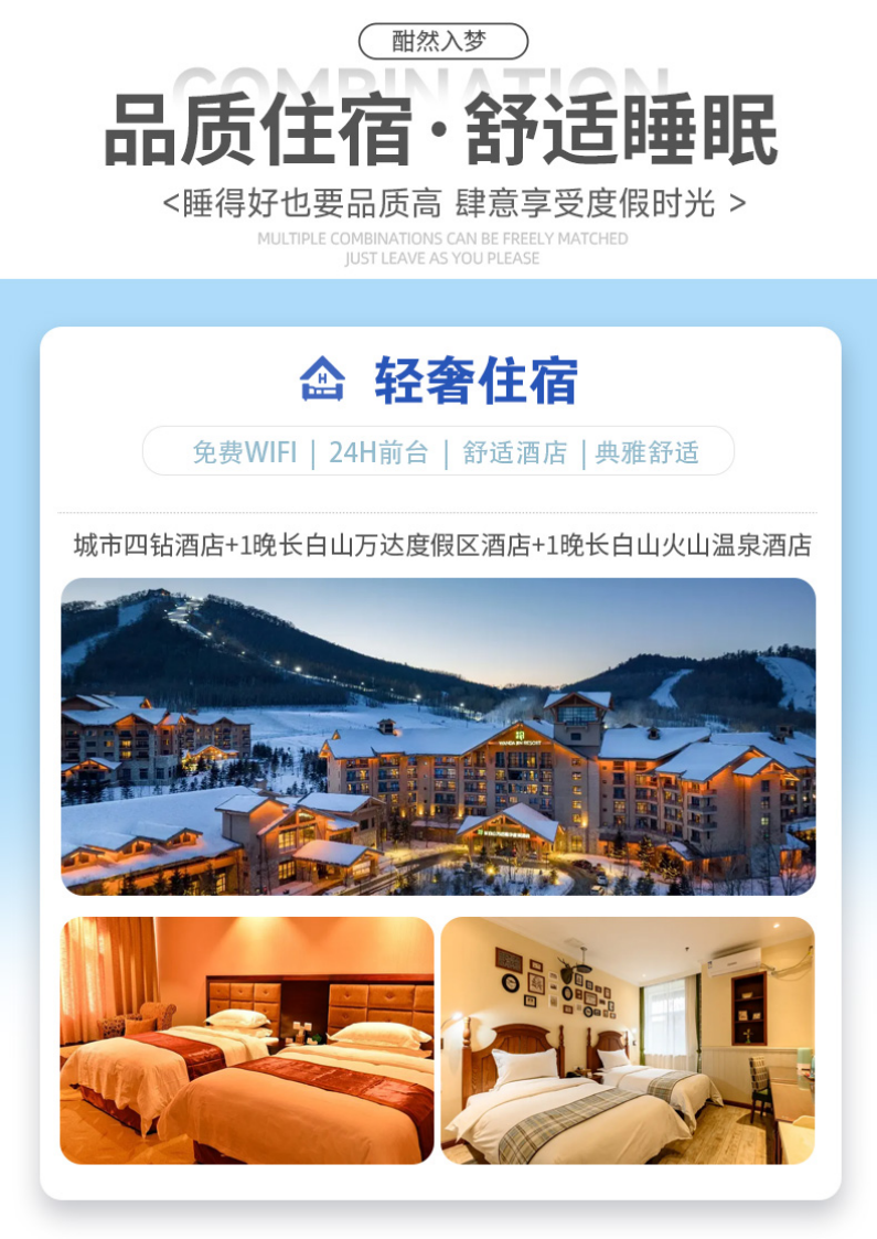 ² 长白山万达国际度假区-冰雪欢乐颂:从长春驶向长白山西麓,抵达设备完善的万达度假区,这里是冰雪爱好者的天堂