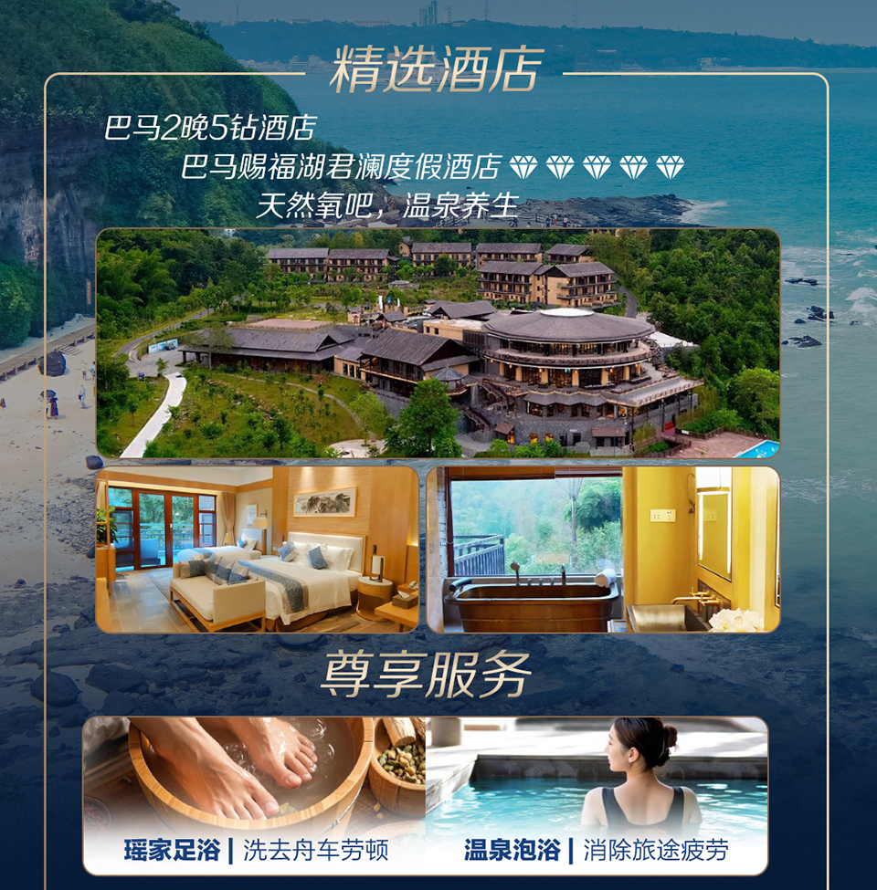 赠送①赐福湖君澜酒店瑶浴泡脚,洗去舟车劳顿;