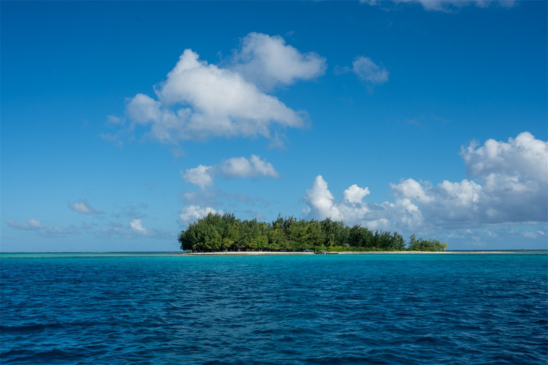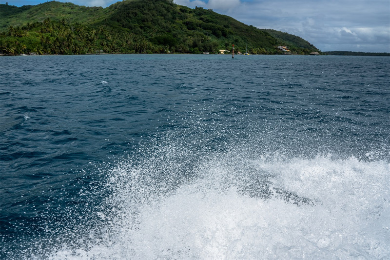 有道是“不识此山真面目,只缘身在此山中“。当我们离开主岛,整个Otemanu(奥 特马 努)火山景色完整的出现在面前,碧海之上,居然出现如此郁郁葱葱的小岛山峰?!令人赞叹。