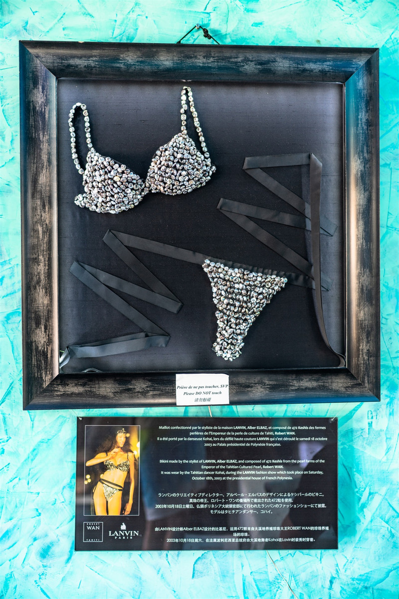 更让人惊叹的还有一件黑珍珠制作的比基尼,由472颗珍贵的 大溪地 黑珍珠制作,将女性的性感和黑珍珠的魔力完美的融合在一起,设计师的才华正如这珠光般流溢而出。这件比基尼曾被来自 大溪地 的国际超模带上 巴黎 时装秀的T台,惊艳四座。