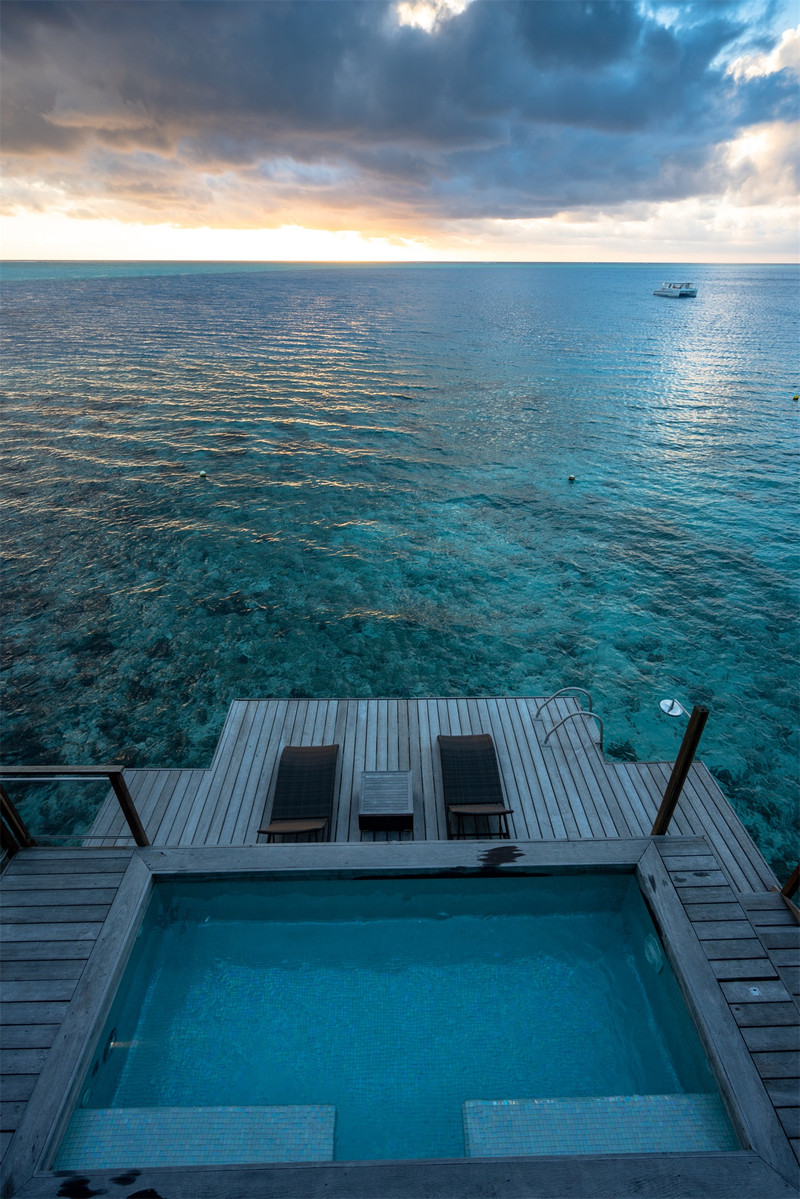 大溪地 的第一晚,我们入住的是洲际酒店的水上泻湖小屋,穿过阳台,就可以直接跃入泻湖之中,像鱼一样畅快游泳。不过在经历了30几个小时的飞行之后,舒服的洗澡休息调整时差还是更有吸引力。