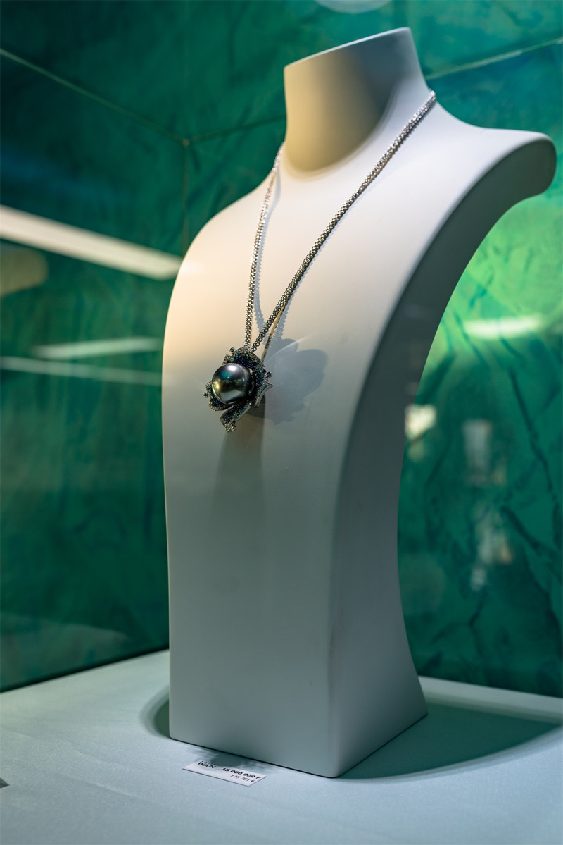 最令人流连忘返的,是这里展出的海量的黑珍珠制品。有直径达22.6 毫米的世界上最大的圆形黑珍珠;有直径超23毫米的世界最大的椭圆形黑珍珠,并有数颗超过20毫米的稀有黑珍珠出售,单个价格都超过100万人民币。让人怦然心动又自叹荷包不鼓。