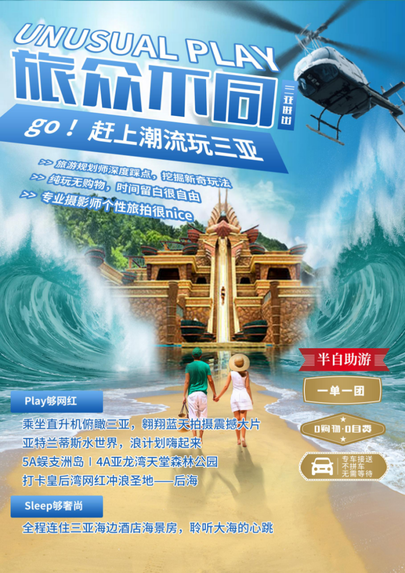 【海南】双飞5日【蜈支洲+亚龙湾森林公园+亚特兰蒂斯水世界+直升机体验+免税城|全程五钻酒店海景房|赠送旅拍】 【旅众不同】一单一团|纯玩无购物