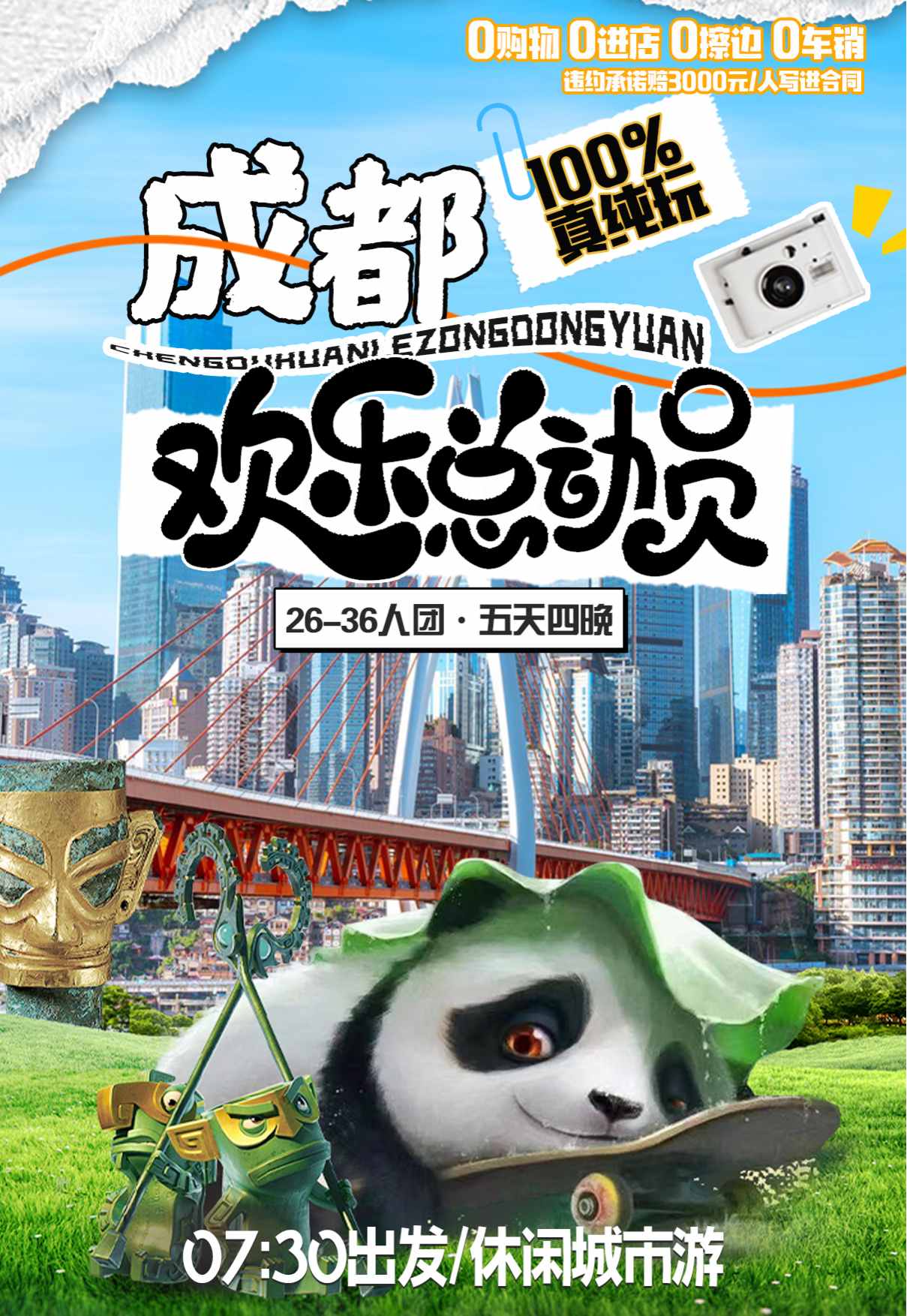 【精华景点】:熊猫基地/三星堆/都江堰/青城山/武侯祠/杜甫草堂/锦里/宽窄巷子/奎星楼