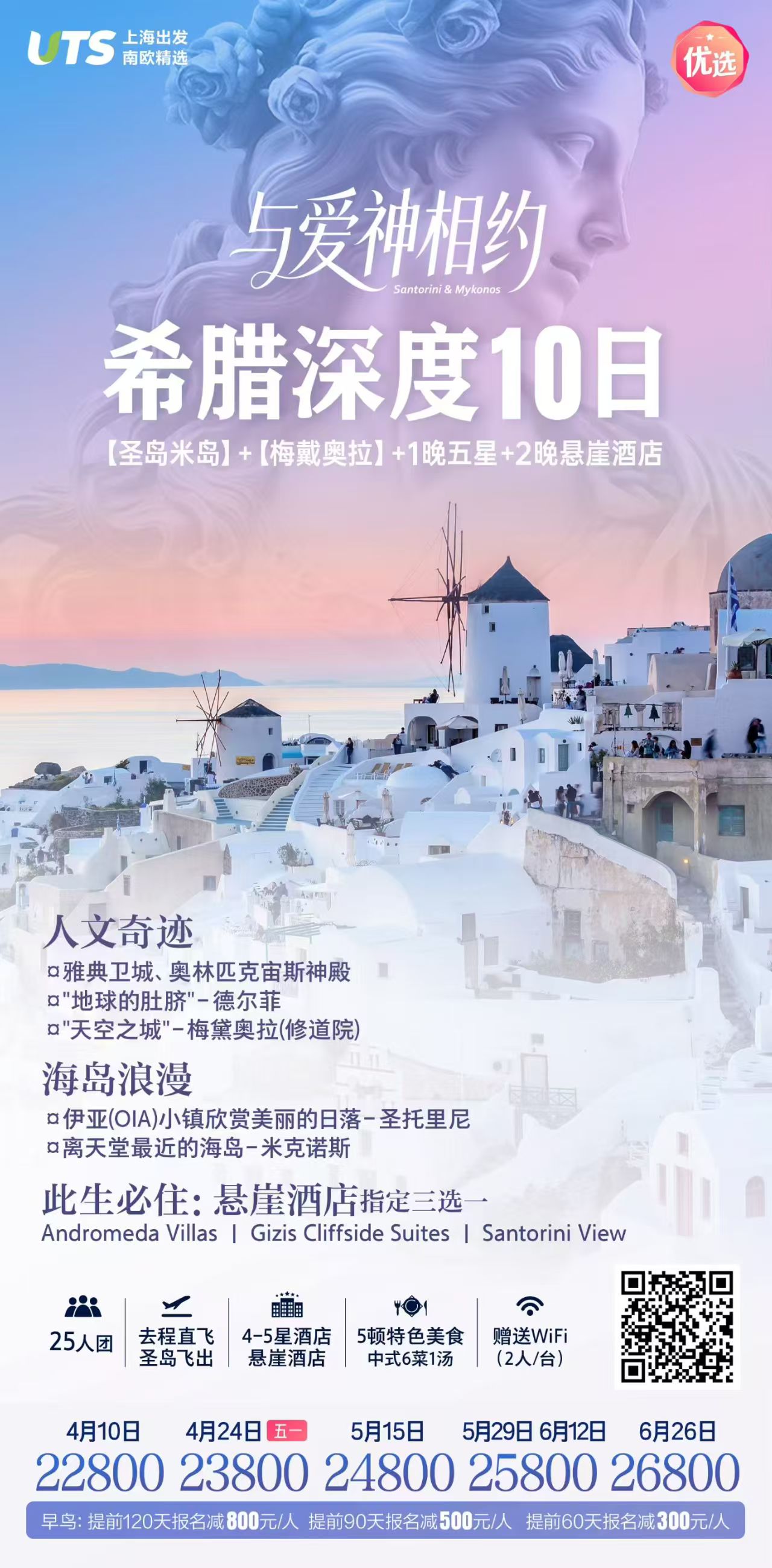 ·舒适出行: 1.内陆加飞:圣托里尼飞出,增加您在圣岛“晒太阳”的时间
