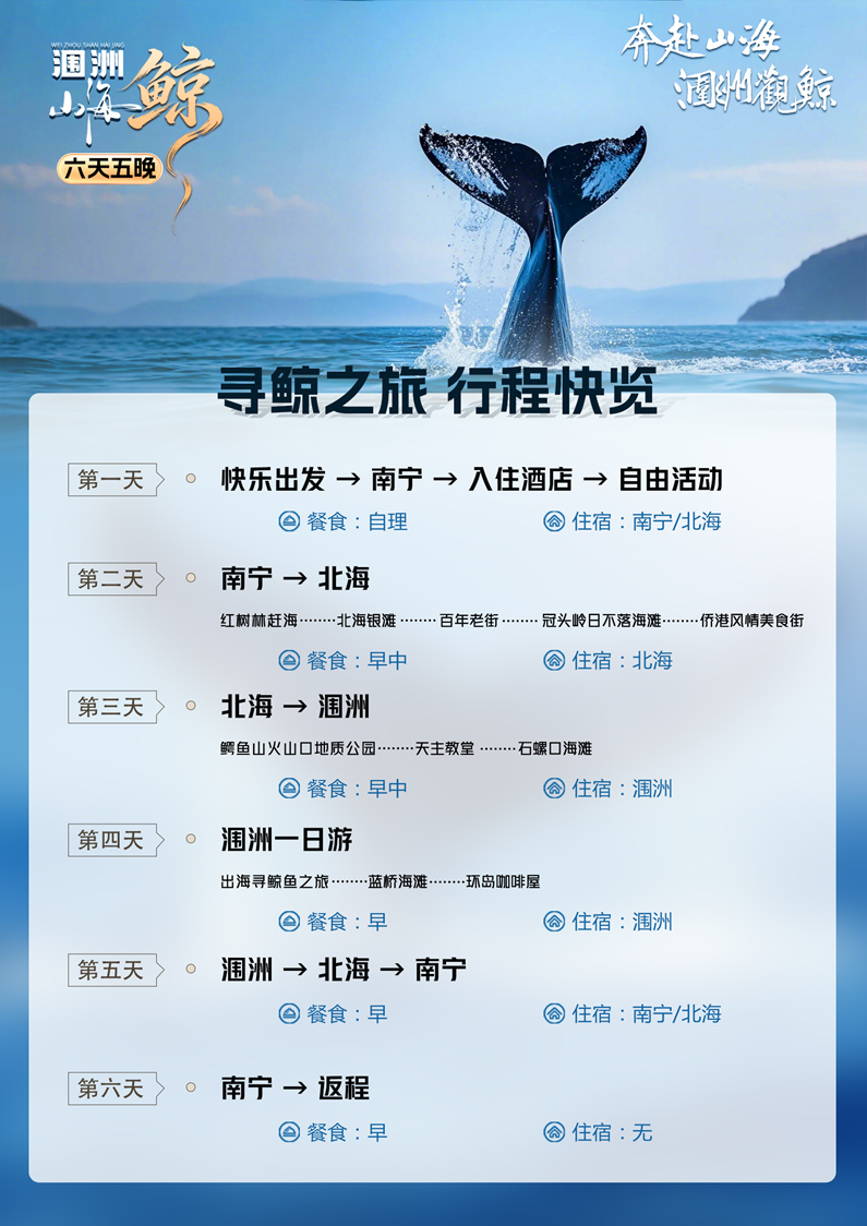 【广西】南宁双飞6日/双卧8日【环岛观鲸+涠洲岛火山口+赶海+北海银滩+天主教堂】涠洲岛网红民宿|全程四钻酒店 【涠洲山海鲸】|10人精致小团|纯玩0购物0自费|海滩沙下午茶|涠洲岛环岛咖啡