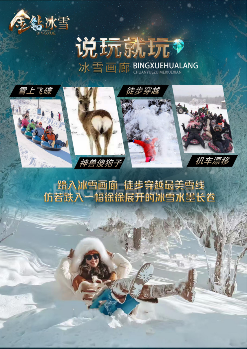 雪上飞碟:具有雪山飞碟美域从雪道上旋转俯冲飞驰而下,刺激非常,韵味无穷