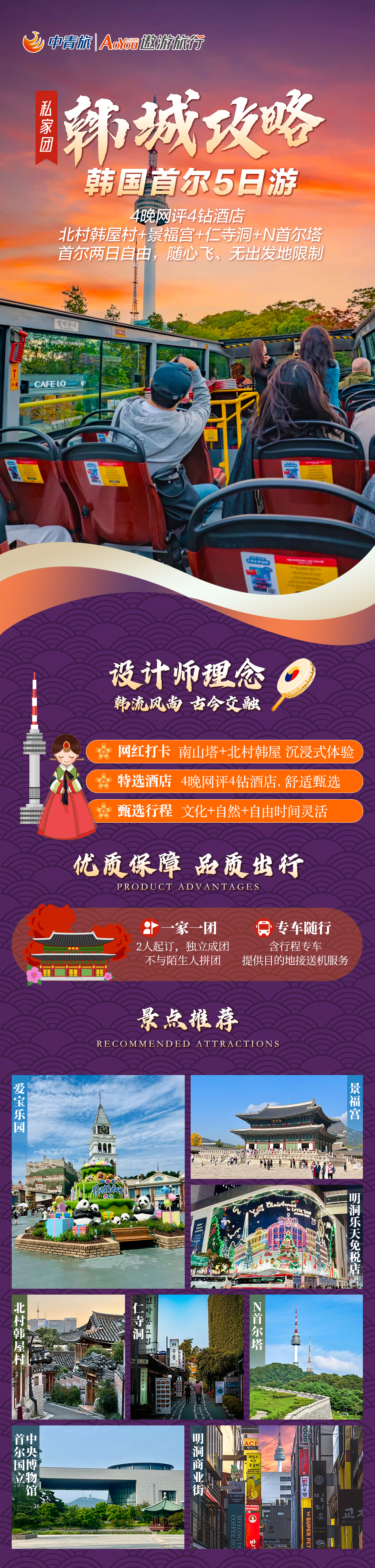 【私家团】韩城攻略—韩国首尔5日游【每天发团,敬请咨询,此产品为非即时确认,需二次确认】