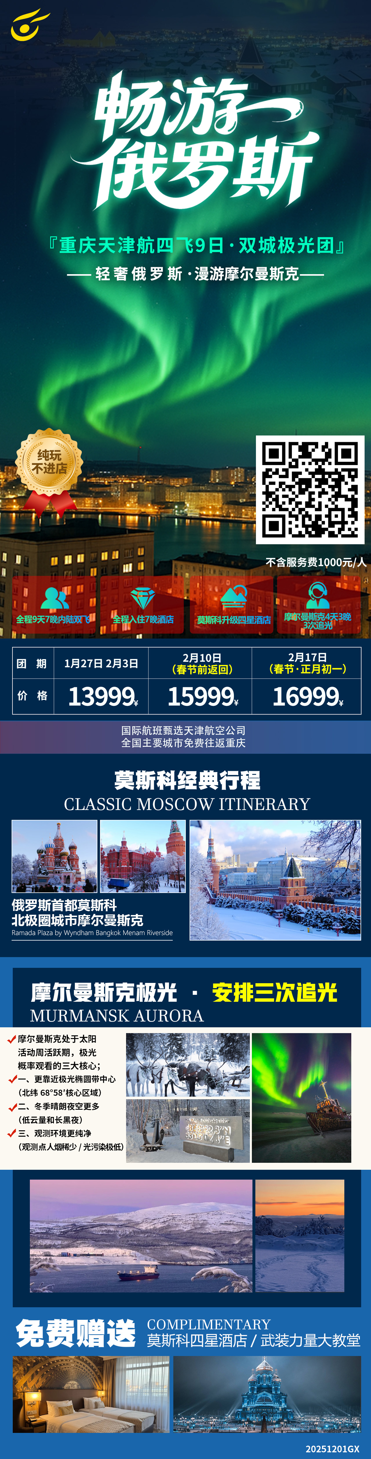 ü 【经典双城游】俄罗斯首都莫斯科-“千顶之城”、“五海之港”、“森林中的首都”以及摩尔曼斯克经典追光之旅;