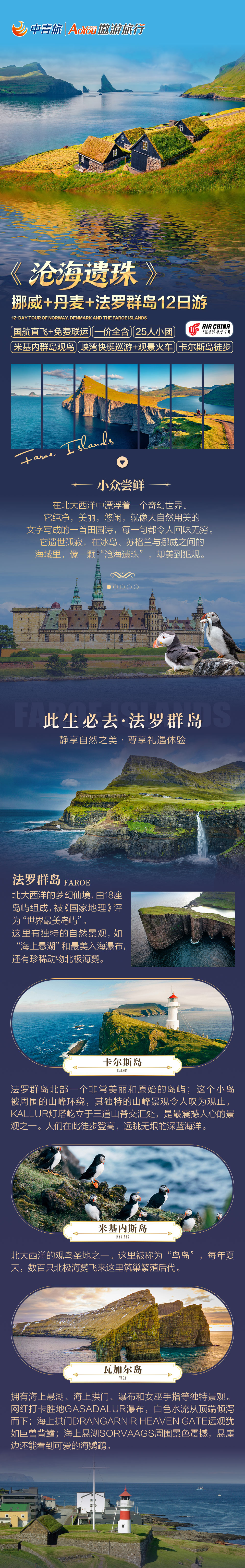 【睿游欧洲】挪威双峡湾+丹麦+法罗群岛12日游【米基内斯岛观鸟/海上悬湖/峡湾快艇巡游+观光火车/默恩白崖+安徒生故居】 国航直飞+免费联运/一价全含/25人团/赠送2人一台wifi